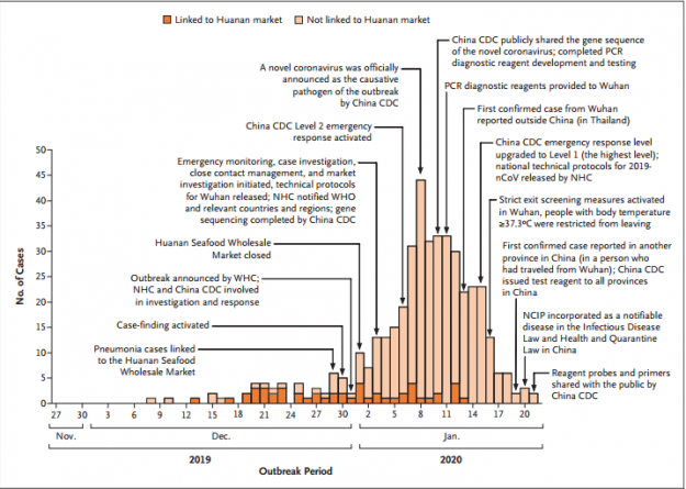 2019年12月,一群不明原因的肺炎患者被发现与中国武汉一家海鲜批发市场有关。通过对肺炎患者的样本进行严格测序,发现了一种新型的β冠状病毒——2019-nCoV(分离自人的气道上皮细胞)。2019-nCoV是感染人类的第七种冠状病毒,不同于之前的MERS-CoV和SARS-CoV。正在进行加强检测和进一步调查。